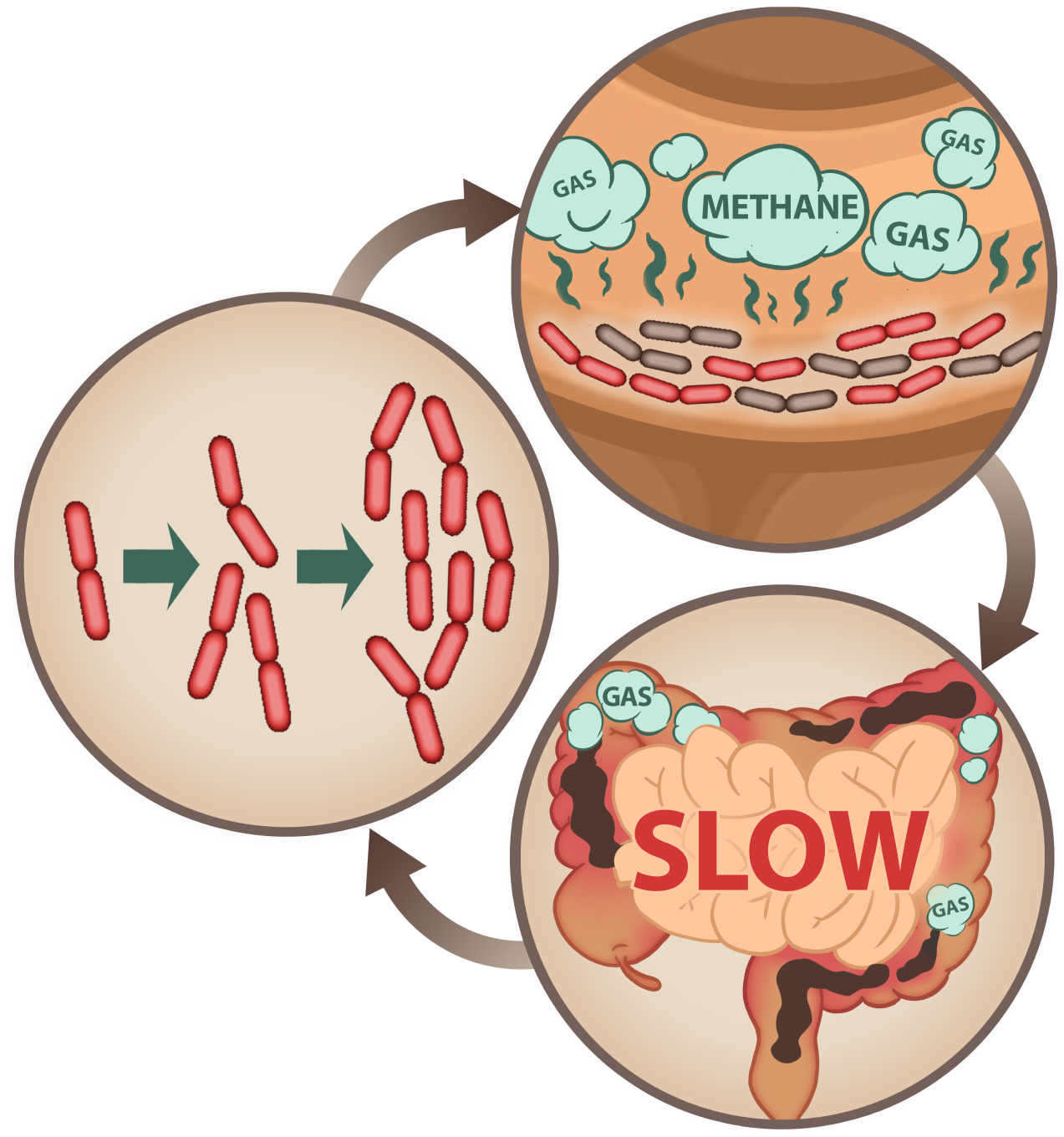 And the more archaea grow inside you, the more methane gas builds up in your body, slowing down your poop speed and causing constipation, bloating, painful cramps, and embarrassing gas.